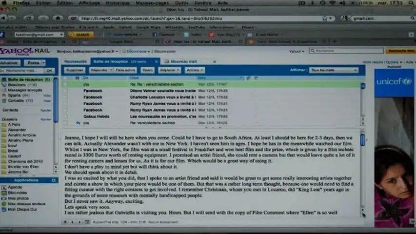 PL:我当然同意合作,但条件是不仅能帮忙剪辑已有素材,还要参与新素材的拍摄。我们想到将那些被让娜偷偷录制的“艺术赞助者”访谈搬演出来。我们分配了角色,并邀请了曾与让娜在剧院合作过的朋友玛琳·萨尔达纳:她钟爱各种滑稽装扮。我们决定让玛琳始终扮演那些权威机构的代表:官僚、赞助商;让娜始终扮演自己;而我则像莎士比亚喜剧中的弄臣,不断变换着立场:时而是让娜的制片人,时而是投资方助理,但总穿着同一套戏服。